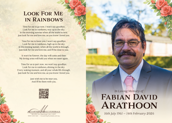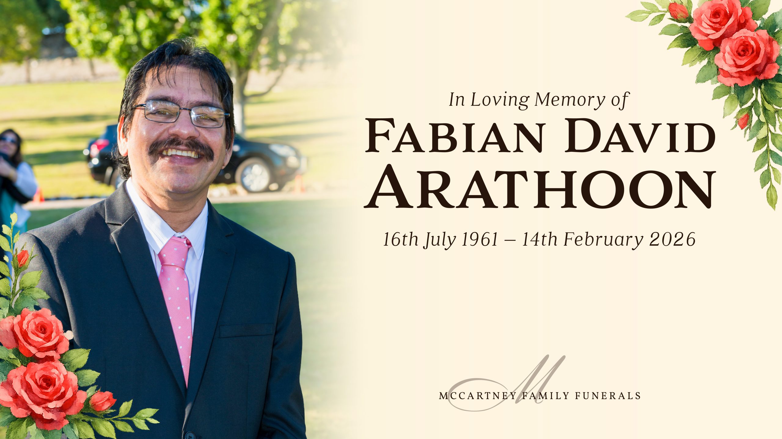 Family and friends are invited to attend a celebration of life for Fabian, to be held on Monday, 23rd February 2026 at Sacred Heart Catholic Parish, 19 Cothill Rd, Booval QLD 4304, commencing at 12:00pm.