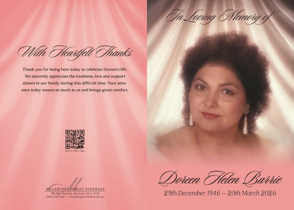 Family and friends are invited to attend a celebration of life for Doreen, to be held on Thursday, 2nd April 2026 at Hemmant Chapel, 500 Hemmant Tingalpa Rd, Hemmant QLD 4174, commencing at 11:00am.