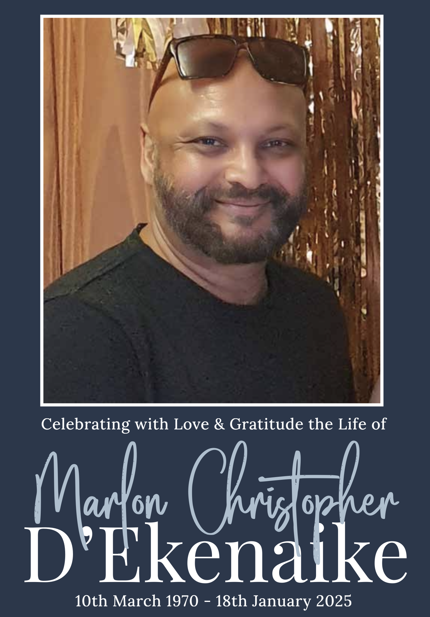 Family and friends are invited to attend a celebration of life for Marlon, to be held on Friday 31st January 2025 at the St Peter’s Catholic Parish, 955 Rochedale Road, Rochedale, commencing at 11:00am.