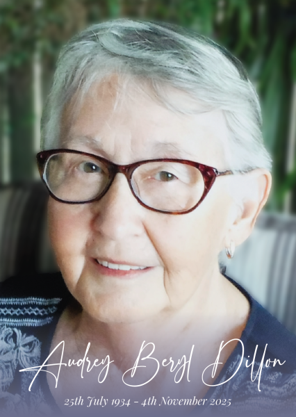 Family and friends are invited to attend a celebration of life for Audrey, to be held on Thursday, 13th November 2025 in the Garden Chapel at the Great Southern Memorial Park, 1774/1794 Mount Cotton Rd, Carbrook, commencing at 11:00am.