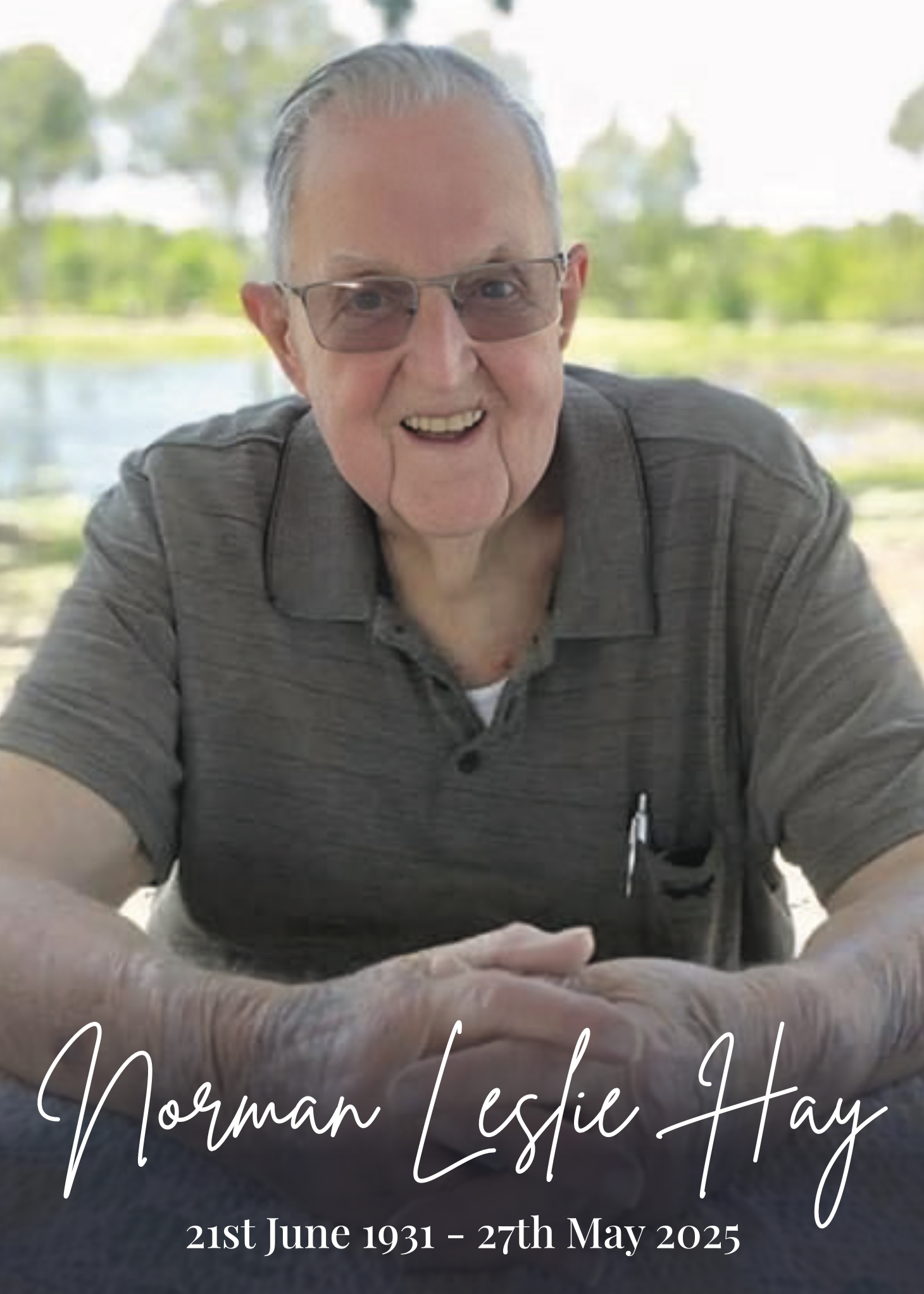 Family and friends are invited to attend a celebration of life for Norman, to be held on Wednesday, 4th June 2025 in the Garden Chapel at the Great Southern Memorial Park, 1774-1974 Mount Cotton Road, Carbrook, commencing at 2:00pm.