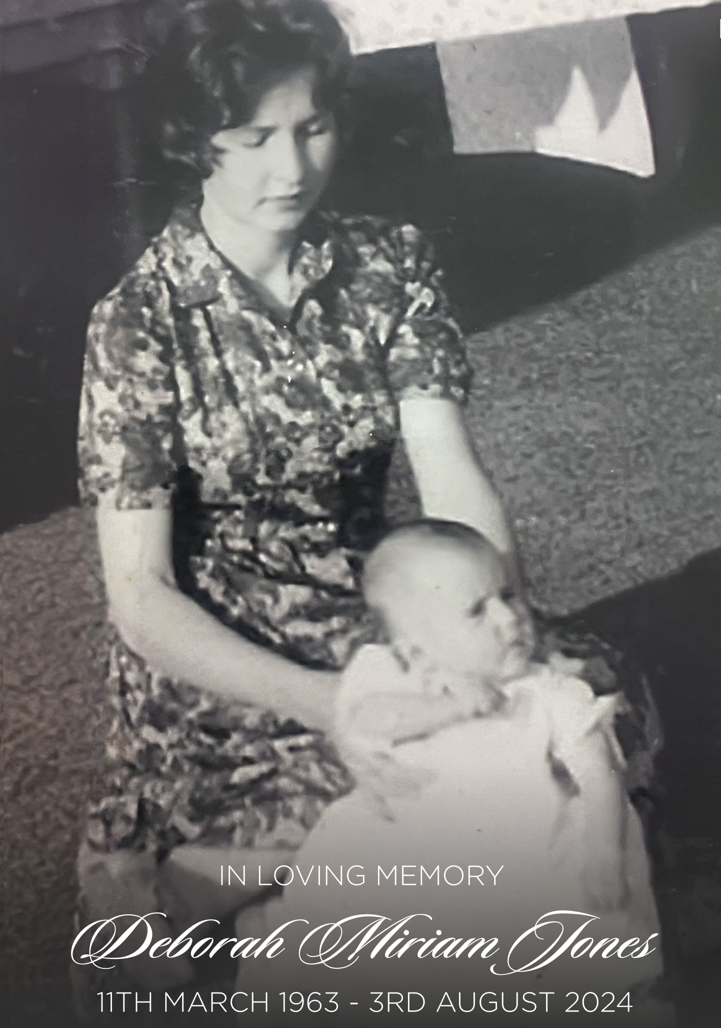 Home JONES, Deborah Miriam JONES, Deborah Miriam Family and friends are invited to attend a celebration of life for Deborah, to be held on Friday 9th August 2024 in the Garden Chapel at the Great Southern Memorial Park, 1774-1974 Mount Cotton Road, Carbrook, QLD, commencing at 2:00pm. Live Streaming View Live Stream Service Stationery Please click on the image above to download a copy of the Service Stationery. Photo Reflection Service Recording Your Funeral Director for this service was + Add to Google Calendar + iCal / Outlook export Date 09 08 24 Expired! Time 2:00 pm Labels Funeral Service Location Garden Chapel - Great Southern Memorial Park 1774-1794 Mount Cotton Road Carbrook QLD 4130 Share this event