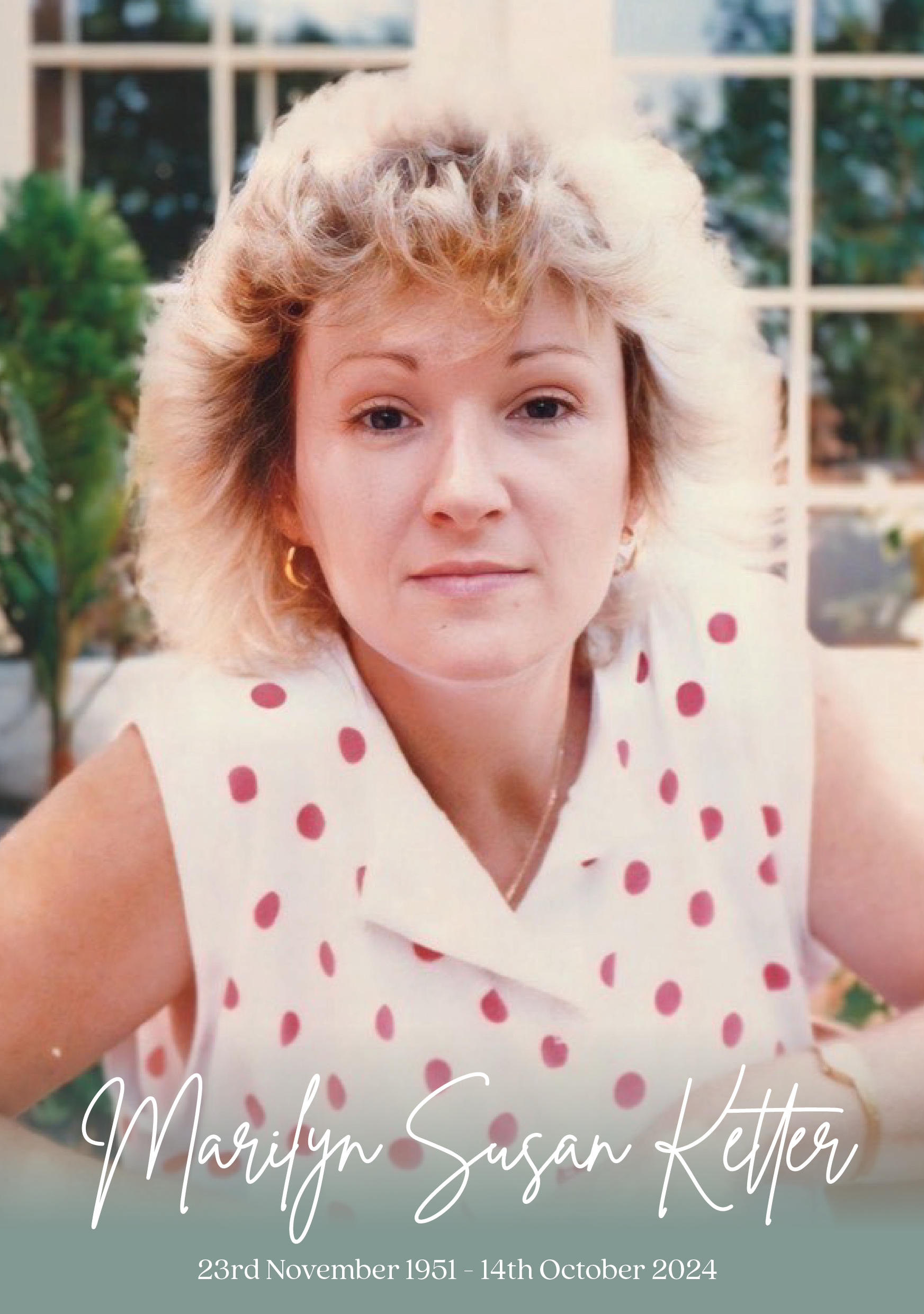 Family and friends are invited to attend a celebration of life for Marilyn, to be held on Tuesday 22nd October 2024 at the Mount Gravatt Cemetery and Crematorium, 620 Mains Road, Nathan, QLD, commencing at 11:00am.