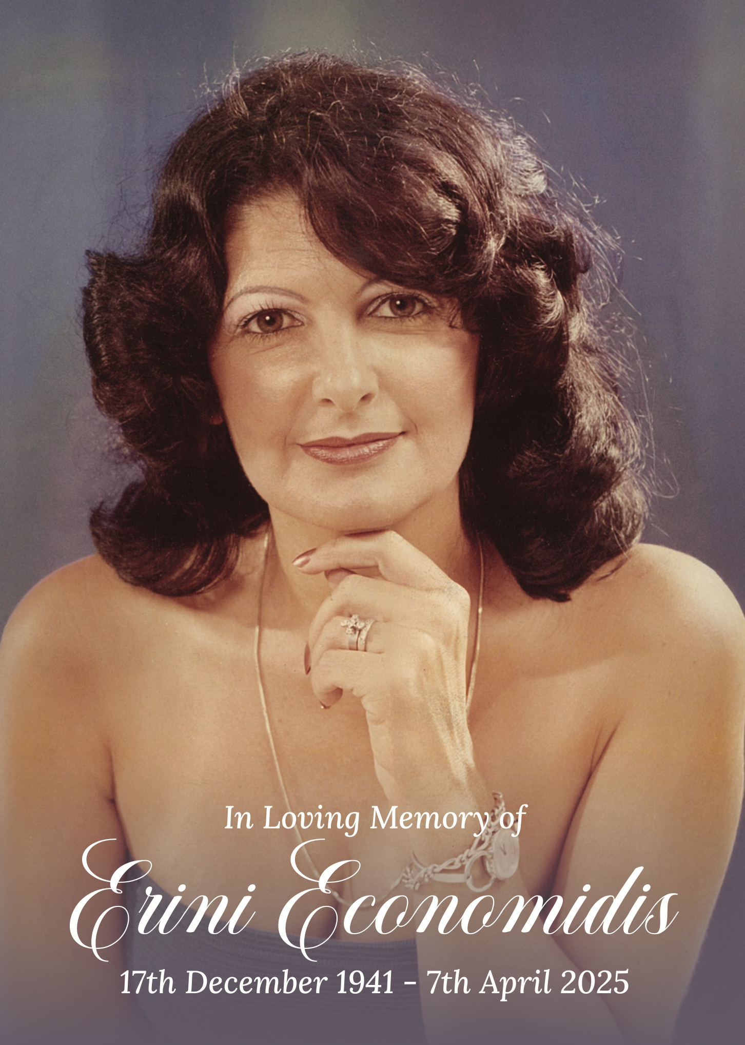 Family and friends are invited to attend a celebration of life for Erini, to be held on Thursday, 17th April 2025 at the Greek Orthodox Church of St George, 33 Edmondstone St, South Brisbane commencing at 11:30am.