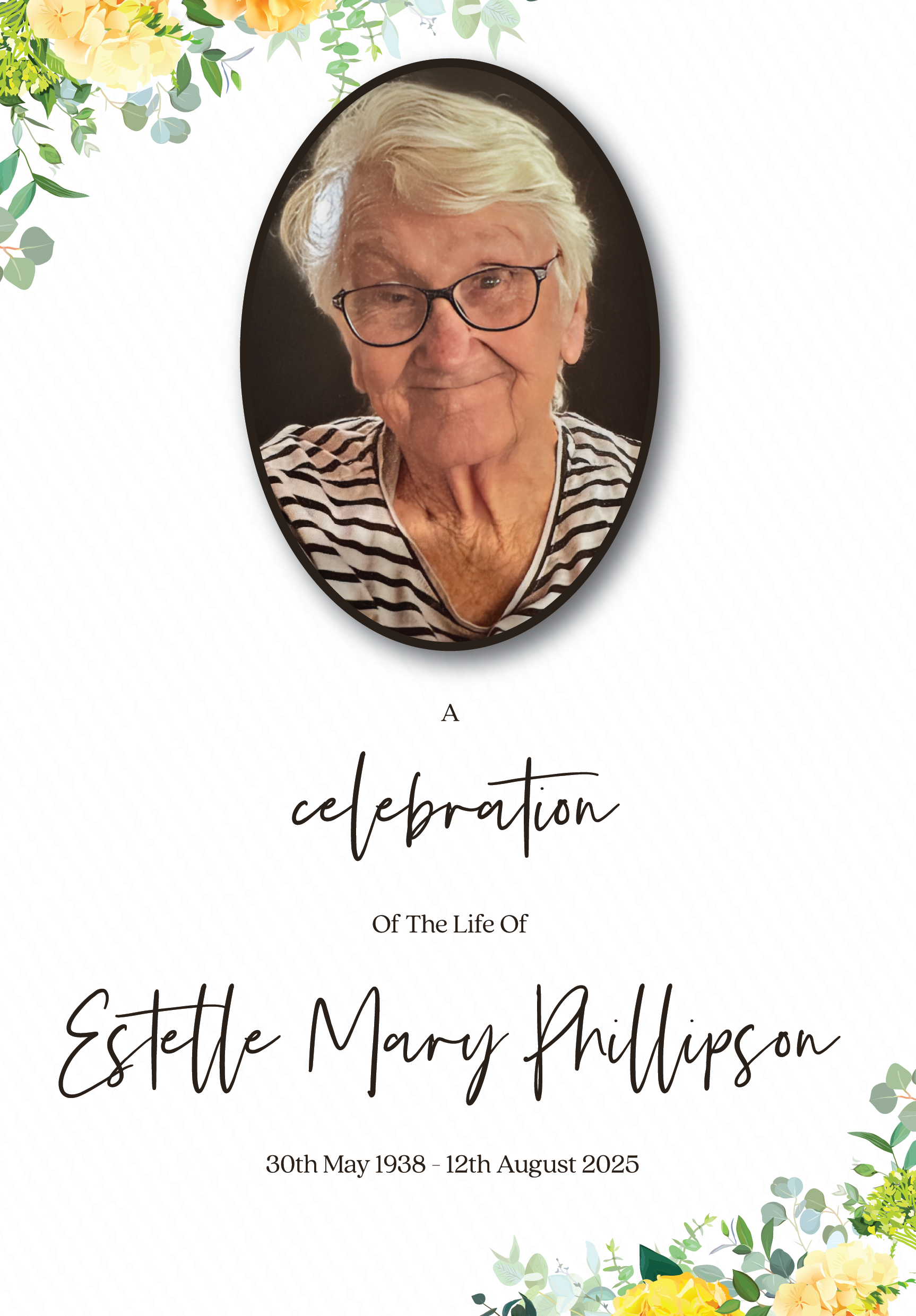 Family and friends are invited to attend a celebration of life for Estelle, to be held on Monday, 25th August 2025 at the Hemmant Chapel, Hemmant And Tingalpa Road, Hemmant, commencing at 11:00am.