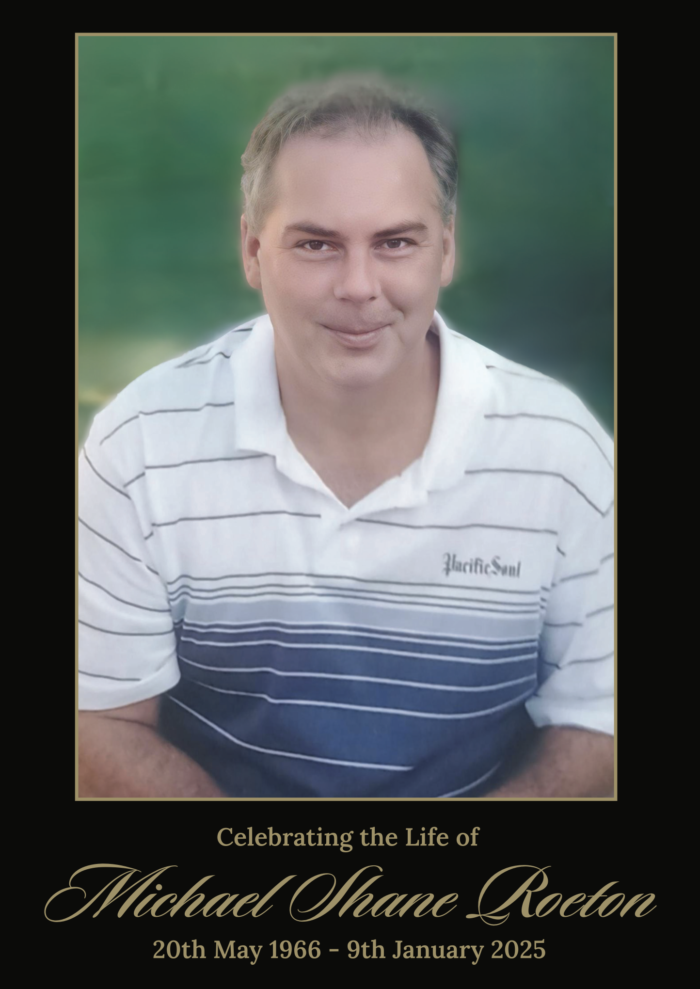 Family and friends are invited to attend a celebration of life for Michael, to be held on Friday, 24th January 2025 in the Garden Chapel at the Great Southern Memorial Park, 1774 Mt, Cotton Road, Carbrook, commencing at 2:00pm.