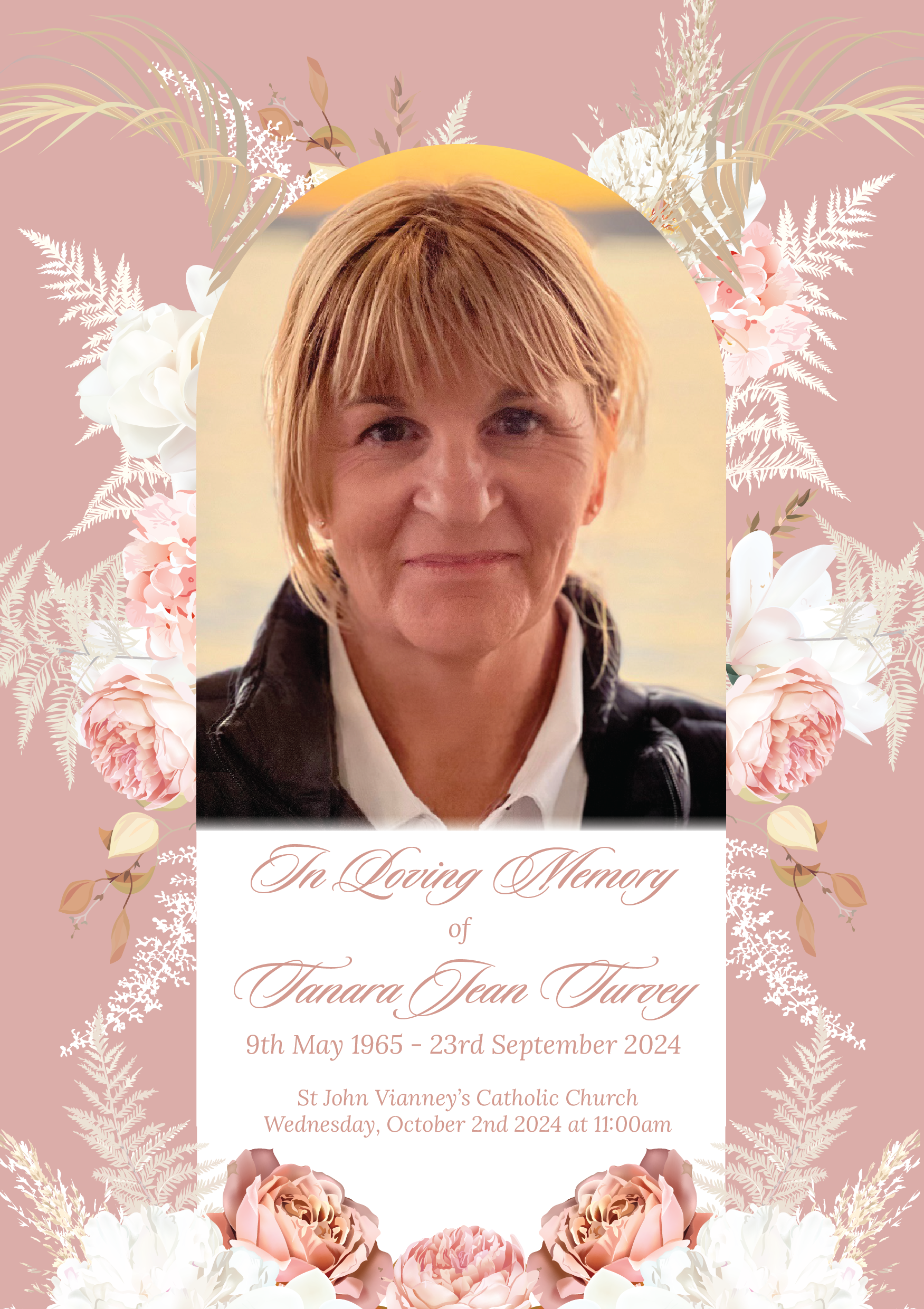 Family and friends are invited to attend a celebration of life for Tanara, to be held on Wednesday 2nd October 2024 at the St John Vianney’s Catholic Parish, 114 Ernest St, Manly, commencing at 11:00am.